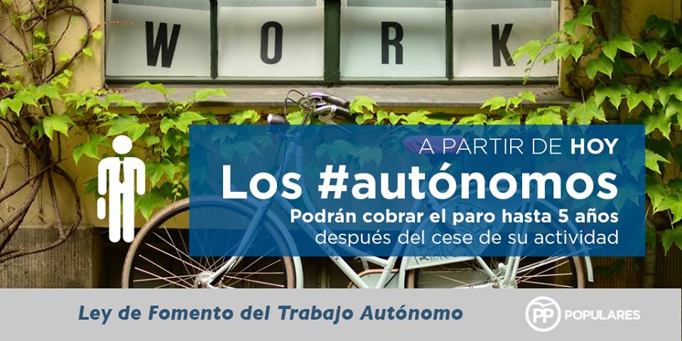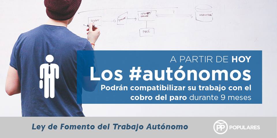 A lo largo de esta legislatura se han aprobado muchas medidas para ayudar a los nuevos autónomos como la Ley de Emprendedores, y para ayudar a los actuales autónomos como el Plan de Pago a Proveedores o la Segunda Oportunidad.