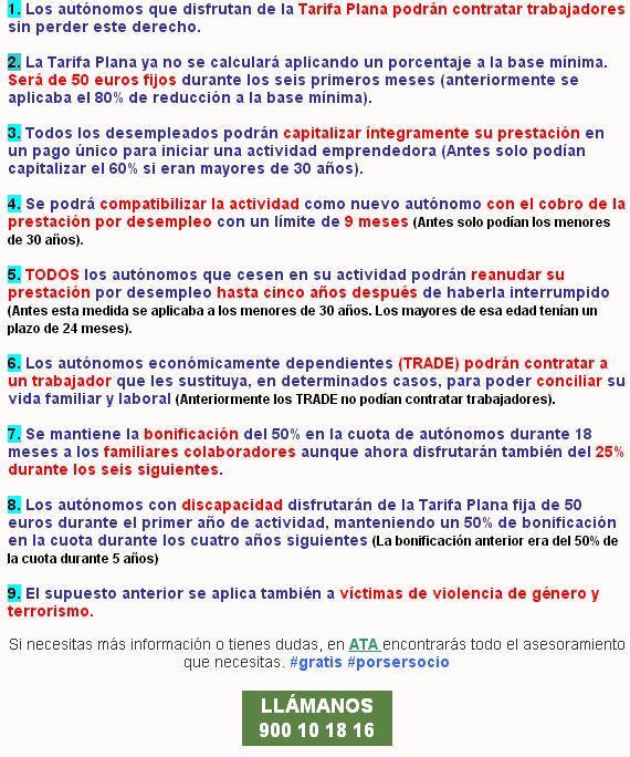 Adjunto un breve resumen de los cambios legislativos comenzando con la imagen del resumen realizado por ATA (Federación Nacional de Autónomos):