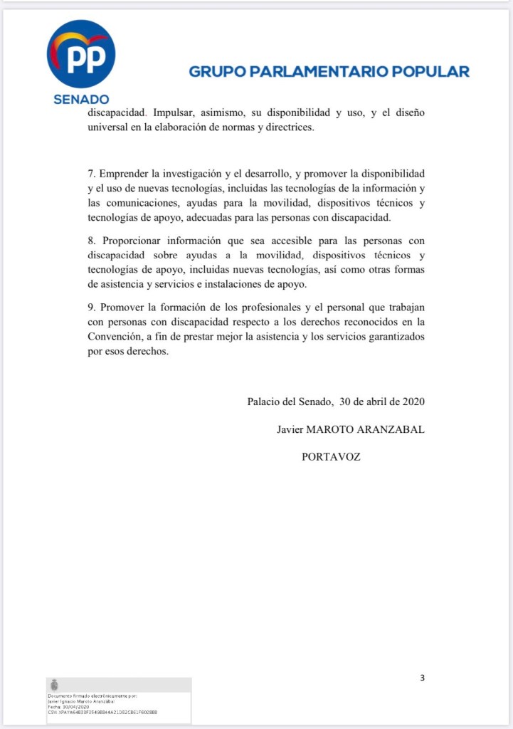 Hoy conmemoramos el Día de la Convención Internacional sobre los Derechos de las Personas con Discapacidad y los senadores del Partido Popular instamos al gobierno al cumplimiento de las medidas contempladas en la Convención para que las personas con discapacidad puedan ejercer sus derechos y tener un vida digna como cualquier español