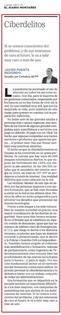 Artículo de opinión publicado por El Diario Montañés (8 de noviembre de 2021)