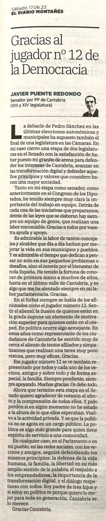 Artículo de opinión publicado en el Diario Montañés (17 de junio de 2023).